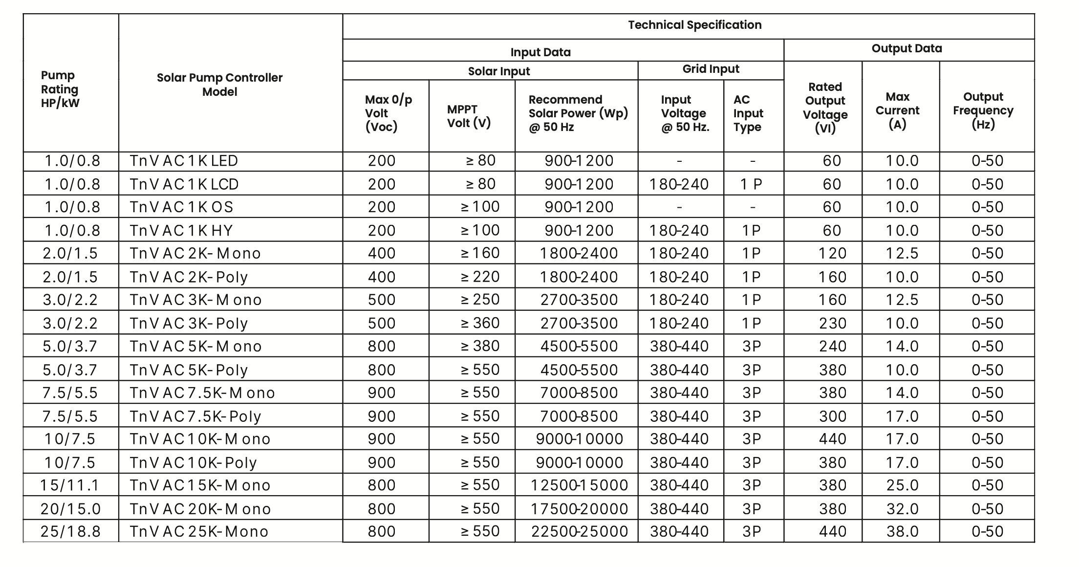 Tnv Hybrid Solar Pump Controller - Ac Induction Motor